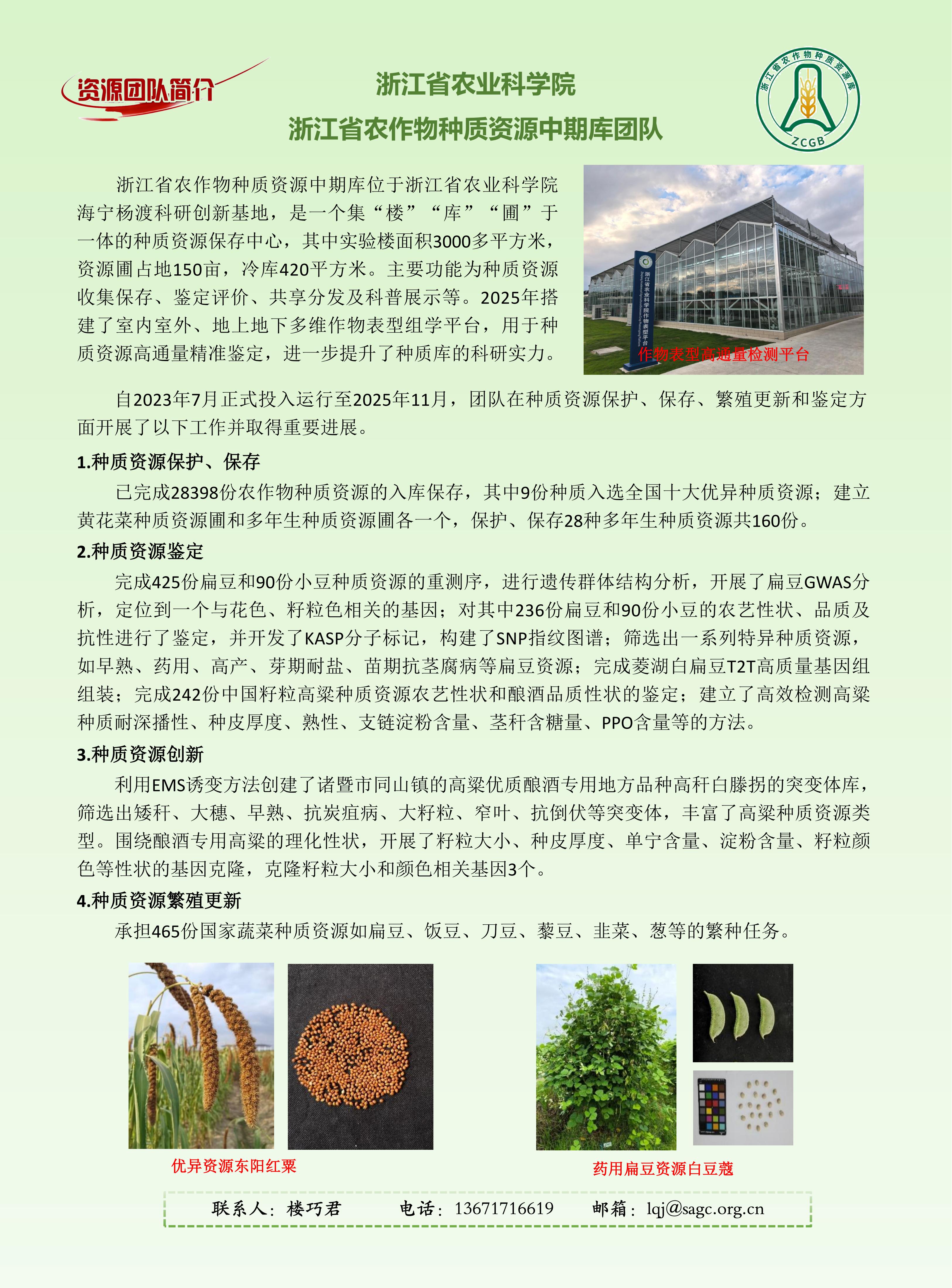 浙江省农业科学院 浙江省农作物种质资源中期库团队